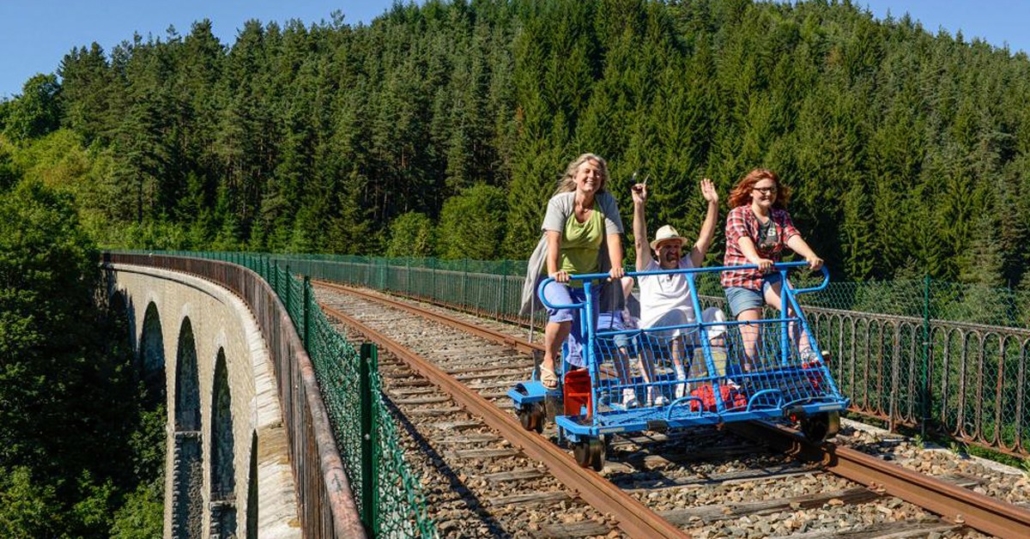 Au départ de Dunières (à 15 km du gîte),Le VéloRail du Velay, c’est l’activité à programmer impérativement lors de votre séjour !
